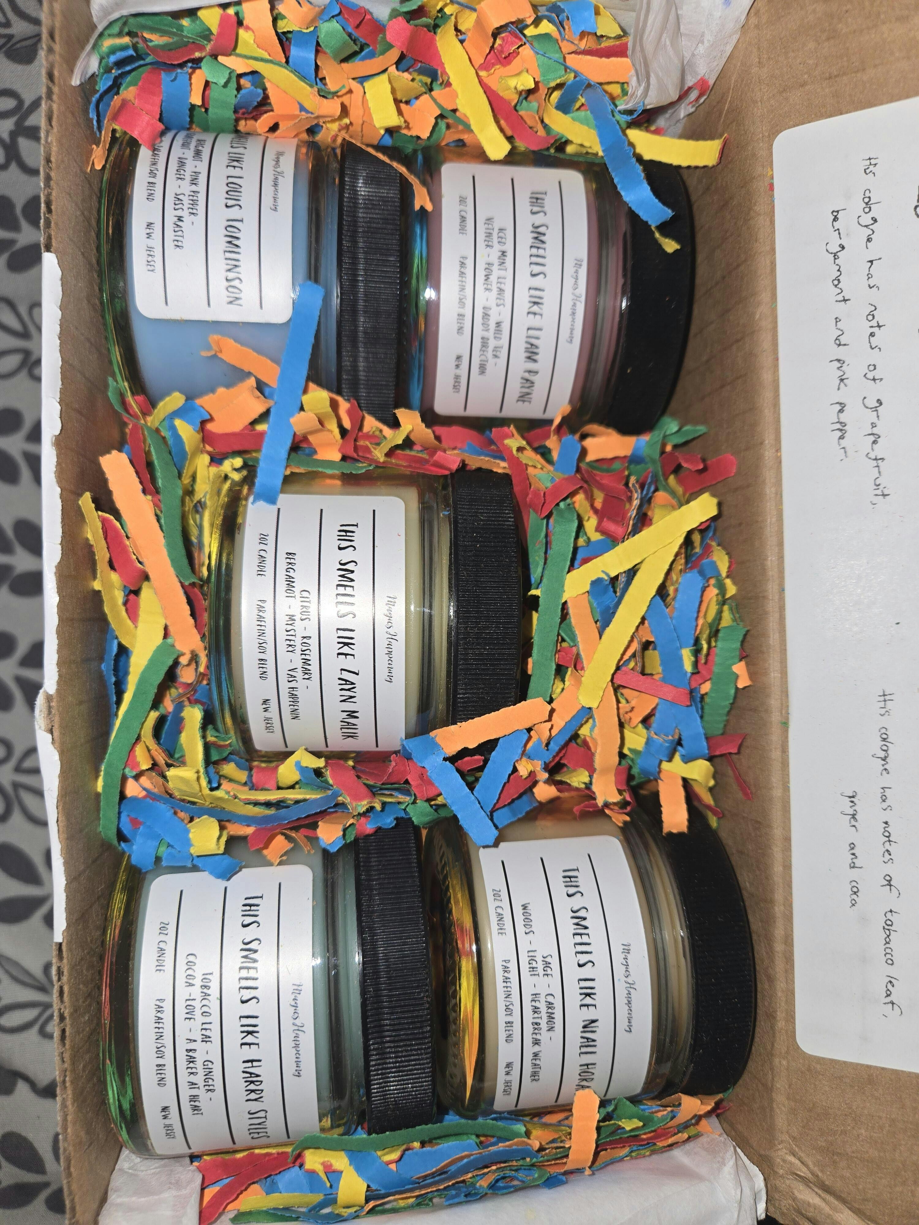 Sampler includes 5 2oz candles, one for each member, in a nicely packaged box perfect for any One Direction fan!