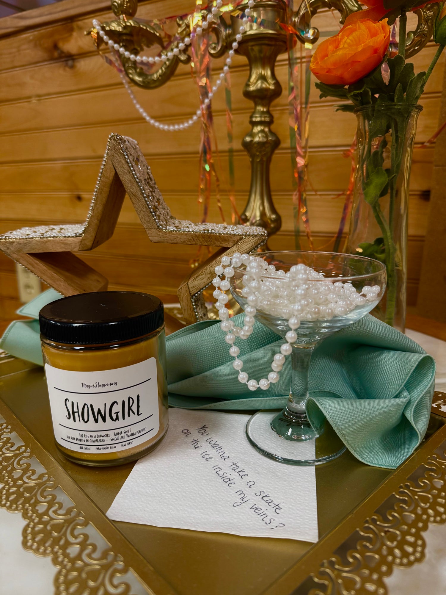 Velvet curtains, sparkling lights, and the intoxicating hum of a jazz-soaked night — this candle captures the timeless glamour of The Life of a Showgirl. Notes of bubbly champagne fizz like golden laughter, while a whisper of vanilla perfume lingers with sultry sophistication. Light this candle and let its fragrance transport you to a world of feathers, sequins, and endless encores — where every moment is a performance, and the spotlight is always yours.